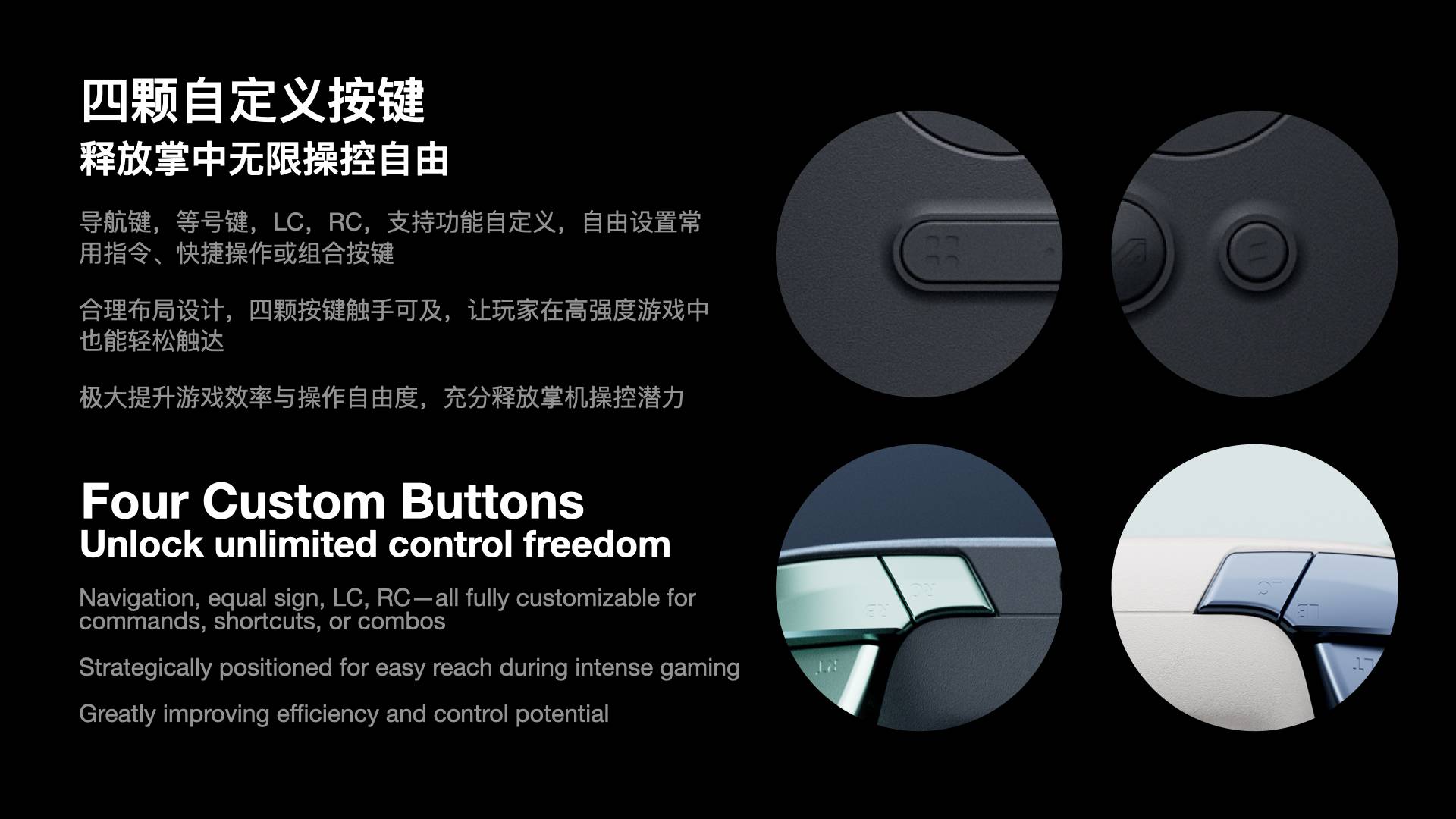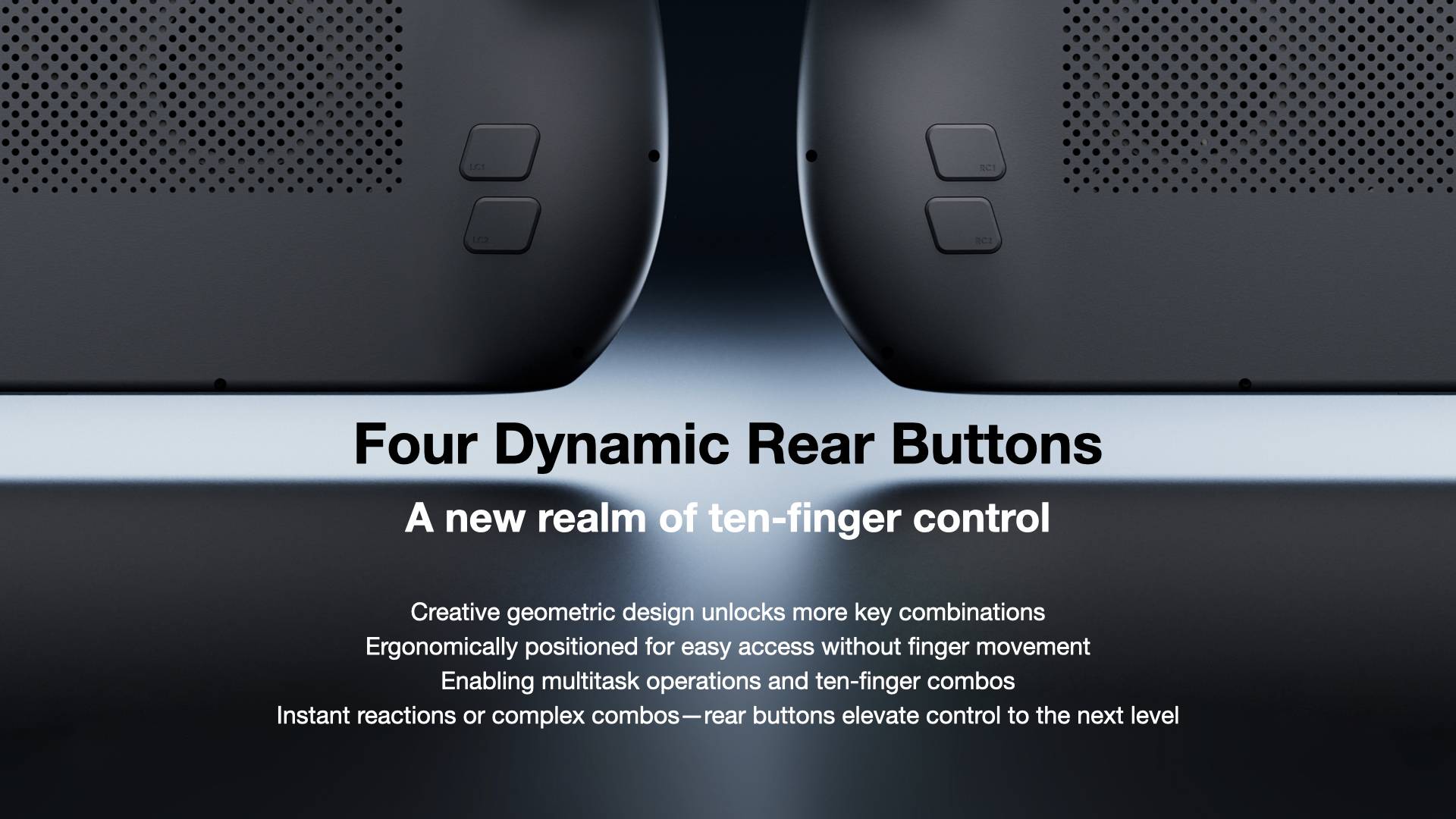 Four ergonomically positioned geometric rear buttons offer fast, natural activation, enabling everything from quick reactions to complex input combinations.