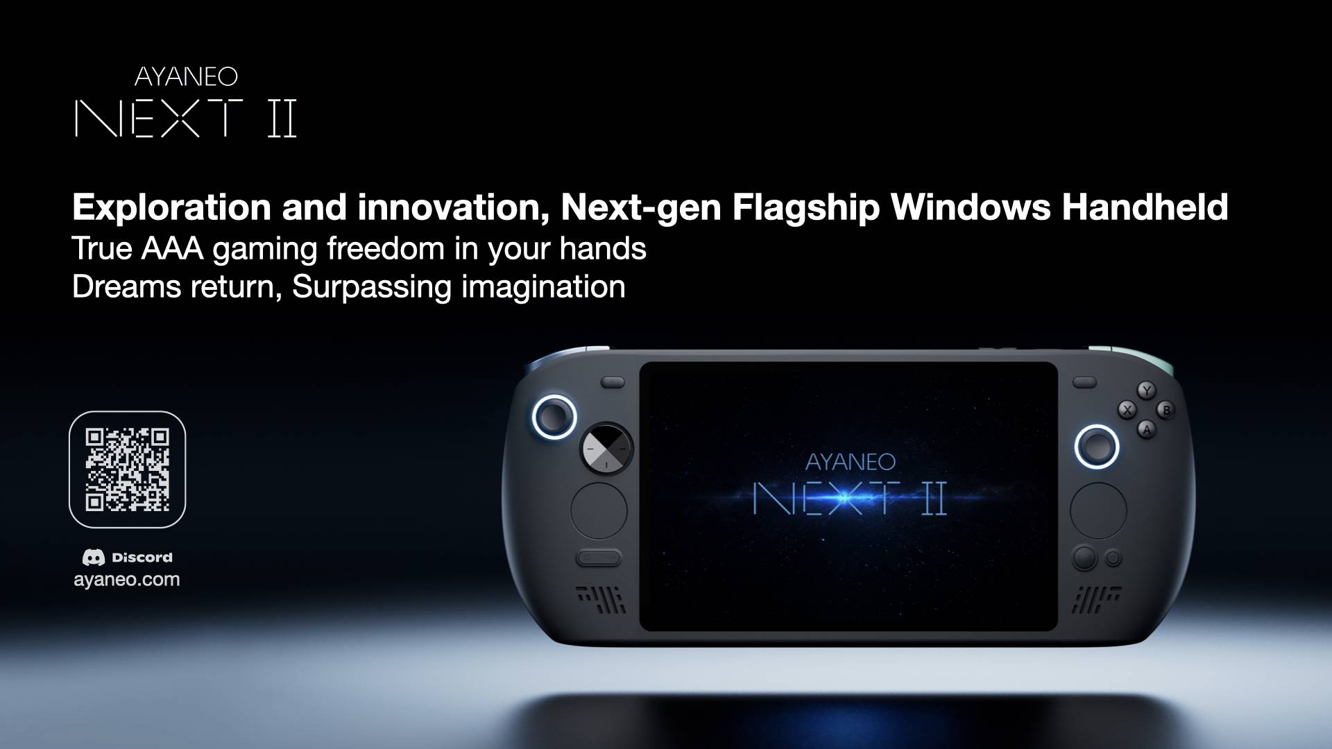 On November 29, 2025, AYANEO officially unveiled its all-new NEXT-generation flagship Windows handheld — AYANEO NEXT II. Continuing its path of relentless exploration and bold innovation, AYANEO once again presents a flagship masterpiece that pushes beyond imagination. This is not just the continuation of a brand spirit, but a cross-generation answer to the future of handhelds — a vision for what’s next, a pursuit of ultimate experience, and a long-awaited promise to “True gamers.”