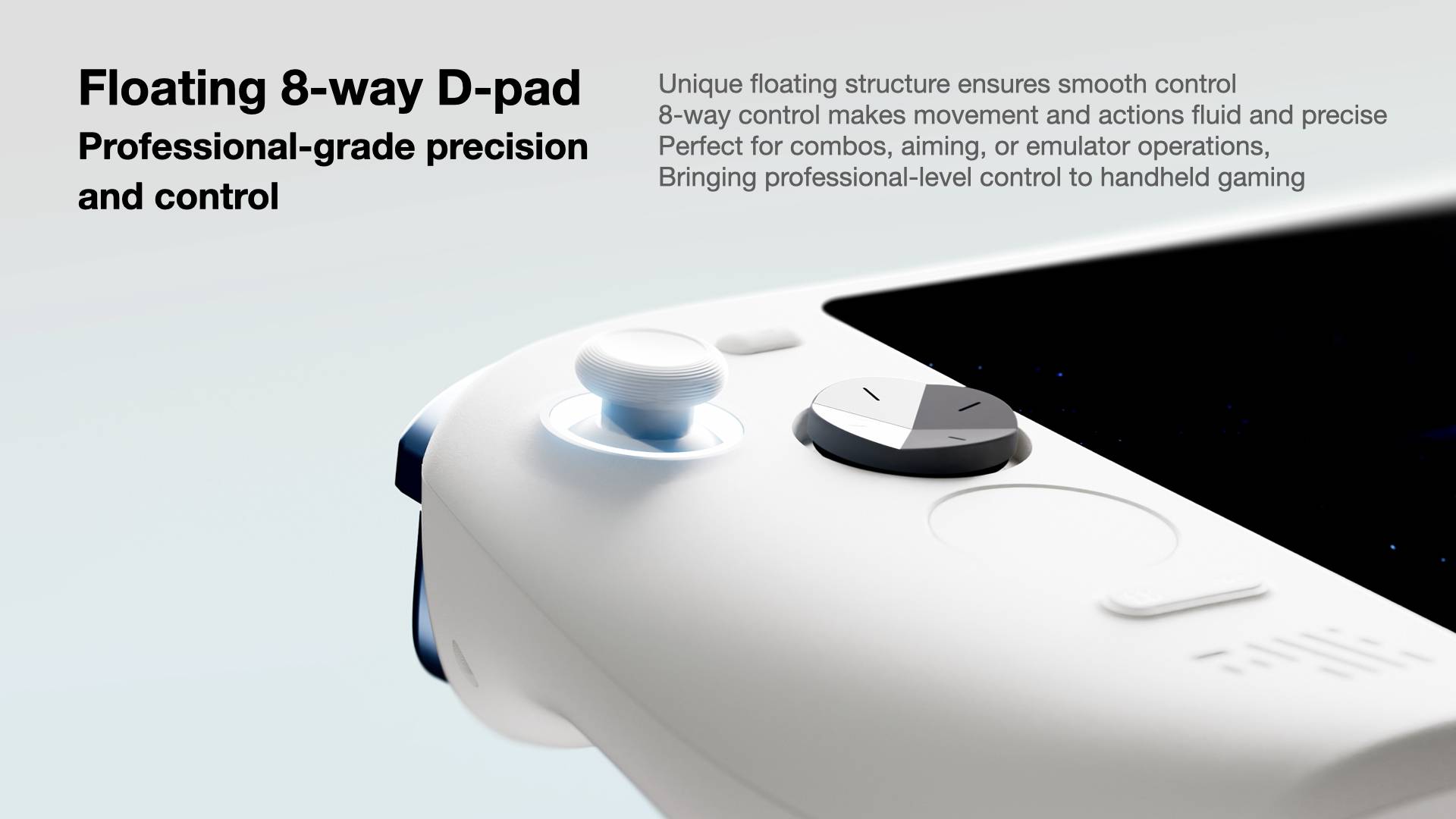 Featuring a unique suspended design, the floating 8-way D-Pad delivers light, smooth actuation with precise directional response.