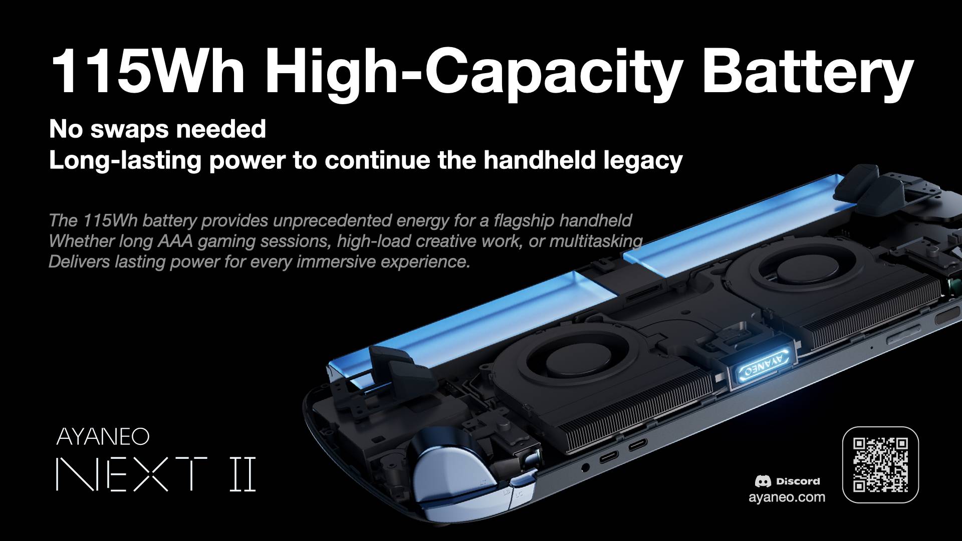 AYANEO NEXT II is the only AI Max+ 395 handheld with an internal battery, and that battery is an astonishing 115Wh.