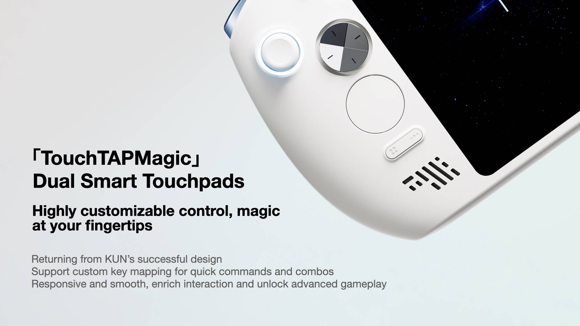 Inherited from the acclaimed AYANEO KUN, the new “TouchTAPMagic” dual touchpads support customizable key mapping and intuitive gesture control.